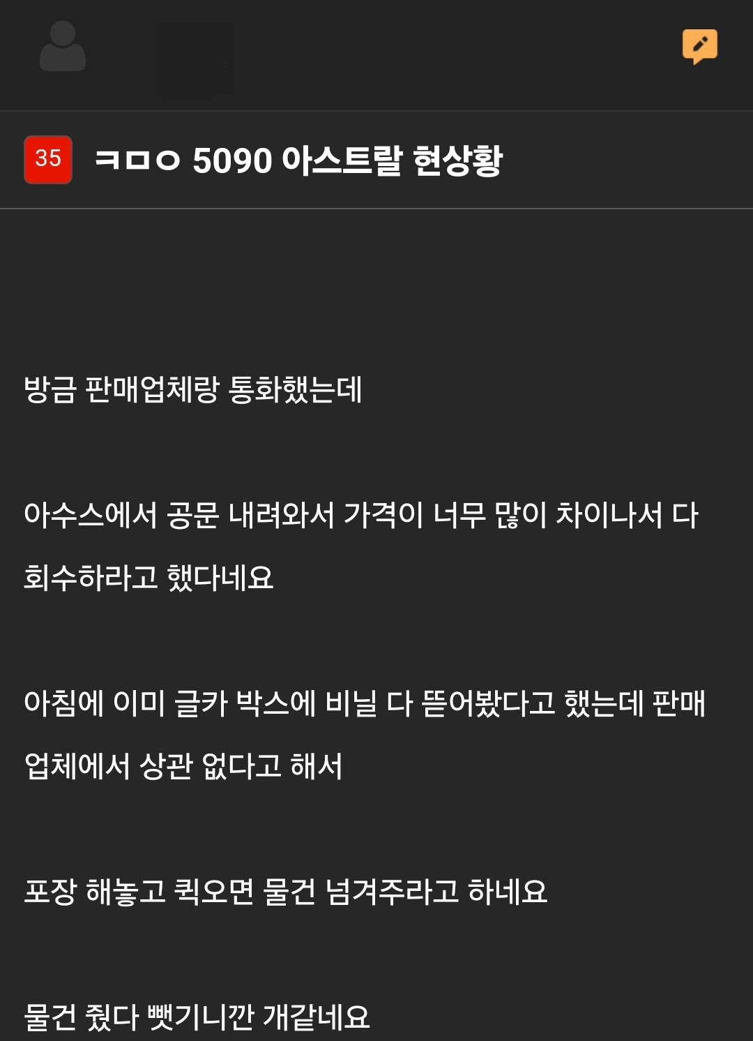 아서스!! 게이머들의 피가! 연구원들의 피가! 정의를 원한다!! 나와라! 비겁한 녀석!! | 25.02.18 16:11 | | |