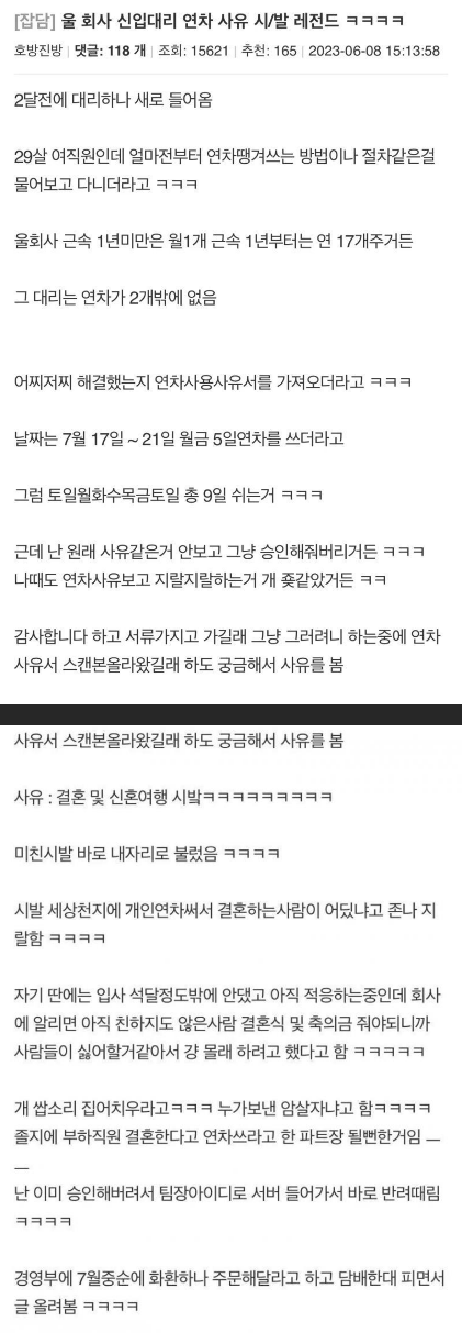 그게 연차없는데 연차를 쓰려는 경우, 즉 단기무급휴가를 포햄해서 양식이 통합되어있는 경우 사유가 있는 경우도 있음. 보통 ↗소가 아닌이상 그냥 개인사유, 병가등 기제하면 끝임. | 25.02.18 16:16 | | |