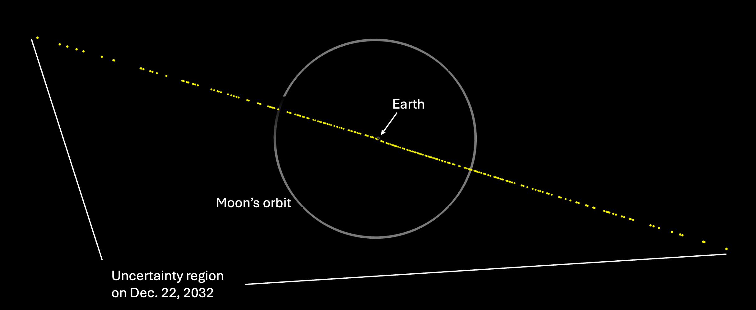 거기에 워낙 멀고 빠르다보니 예상 오차범위도 커서... 점 밀도를 보면 알 수 있듯이 달 공전궤도 안쪽으로 들어올 확률을 높게 보고있지만, 달 궤도의 3배쯤 되는 거리까지도 예상범위 안에 들어감. | 25.02.19 05:11 | | |