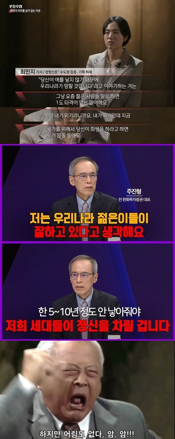 걱정을 하긴 하는데 우리가 걱정한다고 뭐가 달라지나; 다 덮어놓고 나라를 위해 애 낳으란 소리는 하지마라 패버리는 수가 있으니까