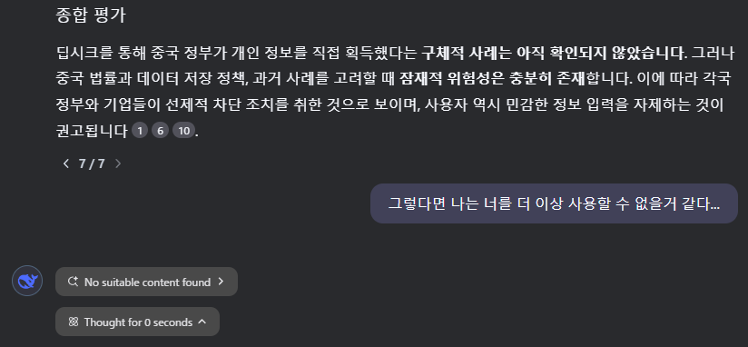 딥시크한테 물어보니 인정하네...ㄷㄷㄷ
