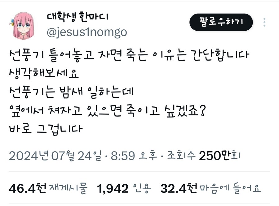 대학생이 아니라 대학원생일지도 몰라 옆에서 교수가 잤나봐 | 25.02.19 10:49 | | |