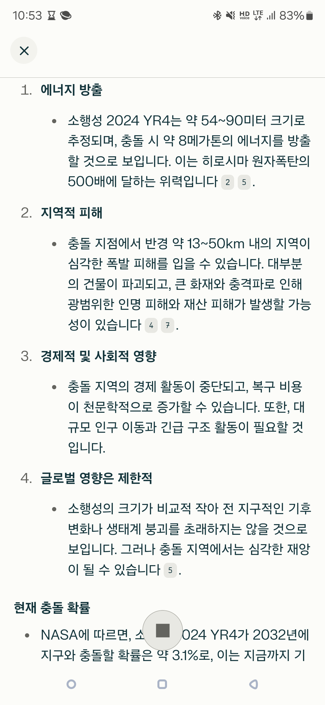 댓글보고 무서워서 찾아보니 11km 폭 정도의 분화구 형성되는 수준의 충돌이라고 함 어디 사람사는 곳에다 직격하는 거 아니면 될 듯 | 25.02.19 11:03 | | |