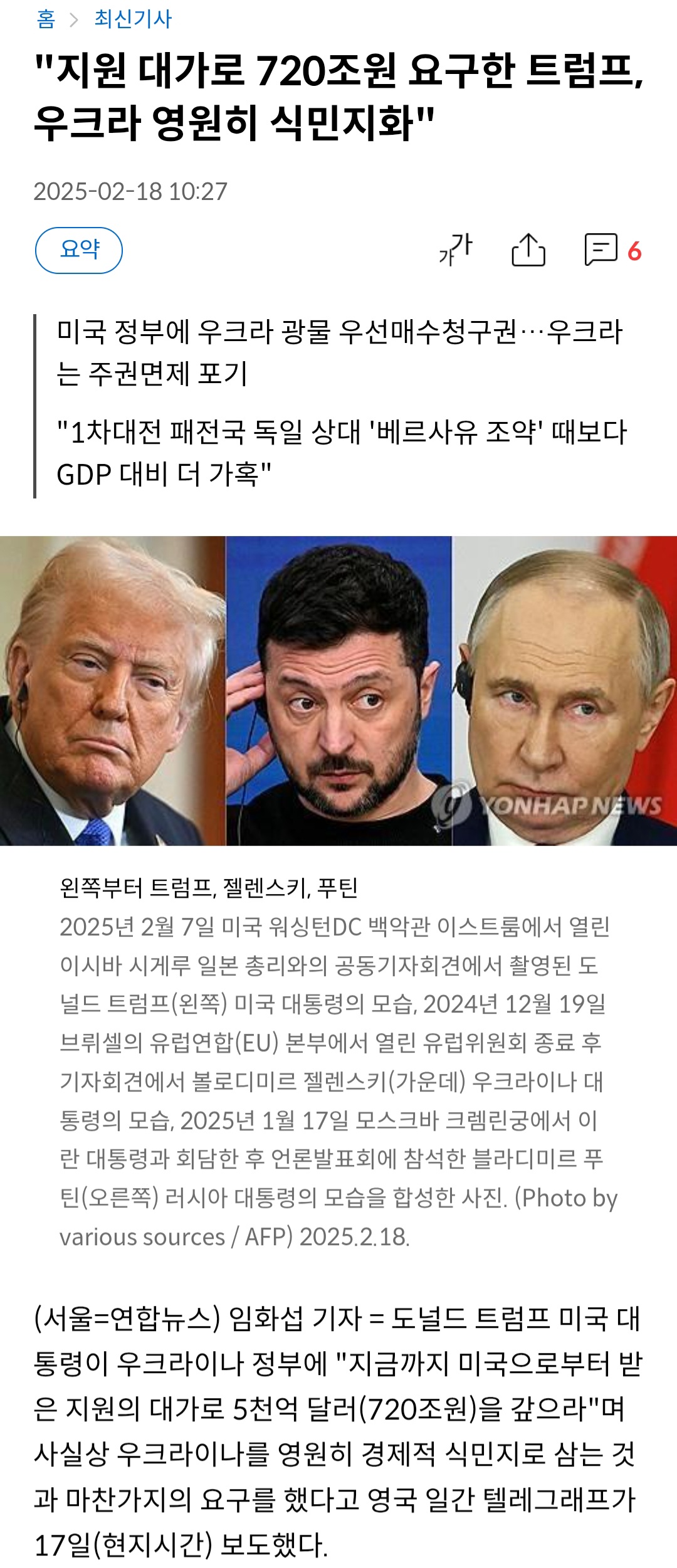 "지금은" 평화유지군 파병하려고 함 트럼프가 푸틴하고 1:1 회담하기 바로 직전이거든 | 25.02.19 12:28 | | |