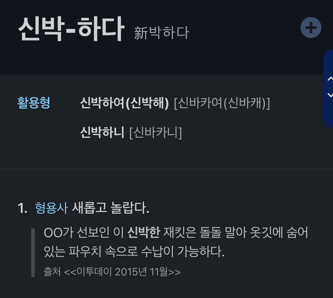 우리말샘이라고 위키느낌으로 공동 편집한듯. 근데 전혀 어원에 맞지 않게 새로울 신을 적어놨네 ㅋㅋㅋㅋㅋ 개판임 | 25.02.20 02:29 | | |