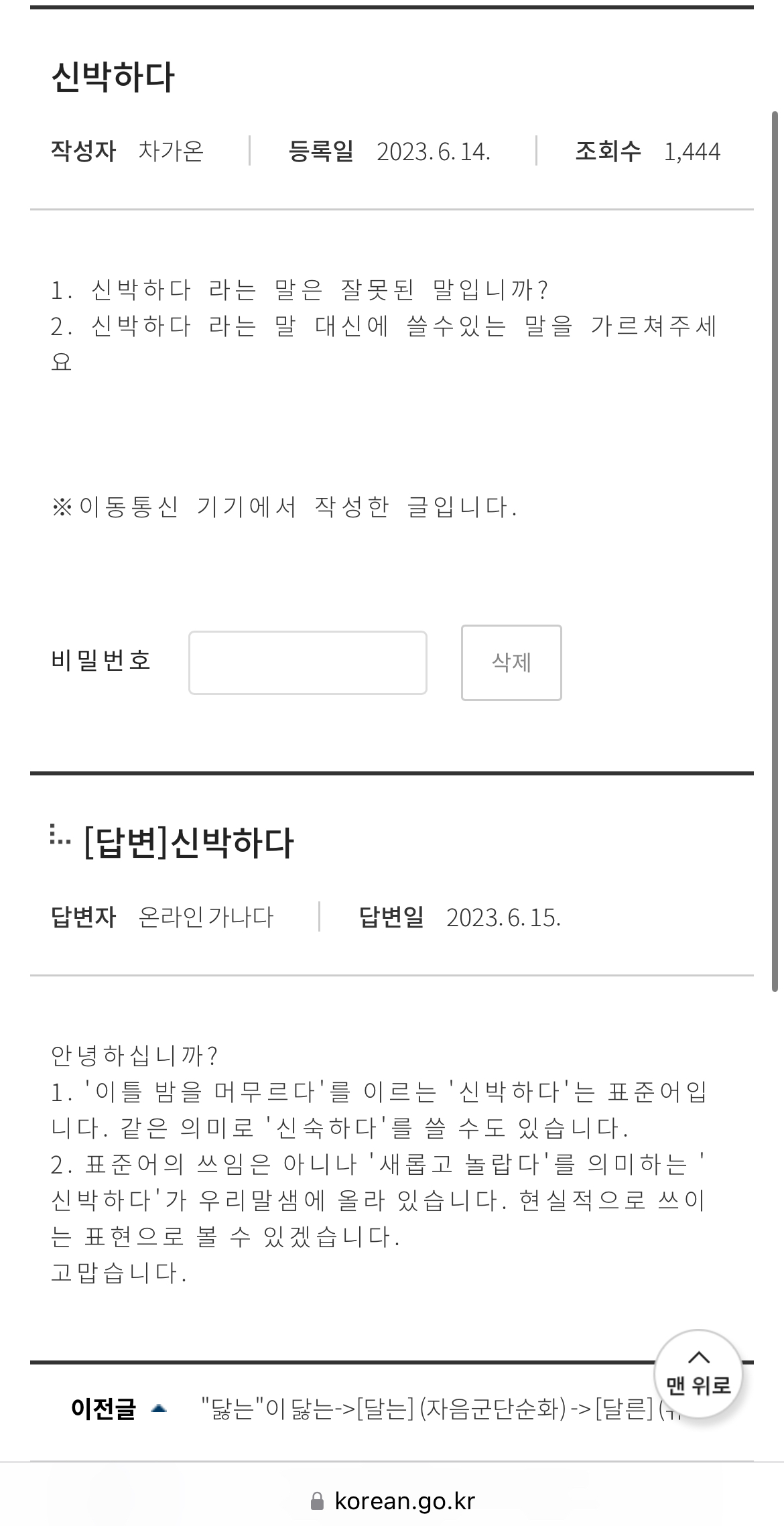 위키느낌인건진 잘 모르겠는데, 나름 국립국어원에도 인용되는 걸? ㅋㅋㅋㅋㅋ | 25.02.20 02:40 | | |
