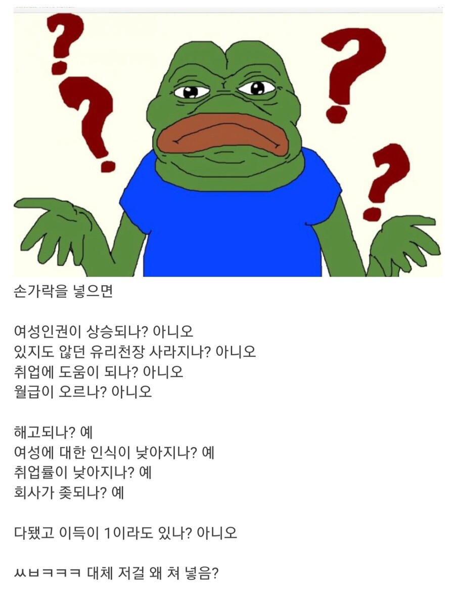 페미: 왜 처넣냐면 너같은 소추핸냄들을 발작시킬수 있거든! 그리고 그것은 너희의 고추가 작다는 증거이기도 하다! 야 신난다 재미난다! | 25.02.20 10:43 | | |