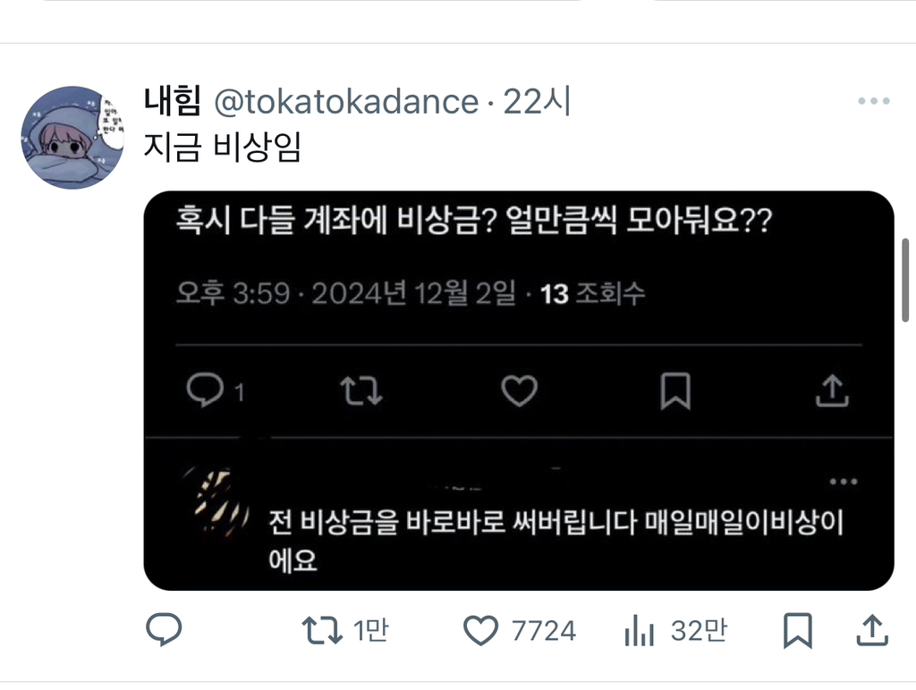 "그게 왜 네 비상금임 ㅋㅋㅋ" | 25.02.20 14:25 | | |