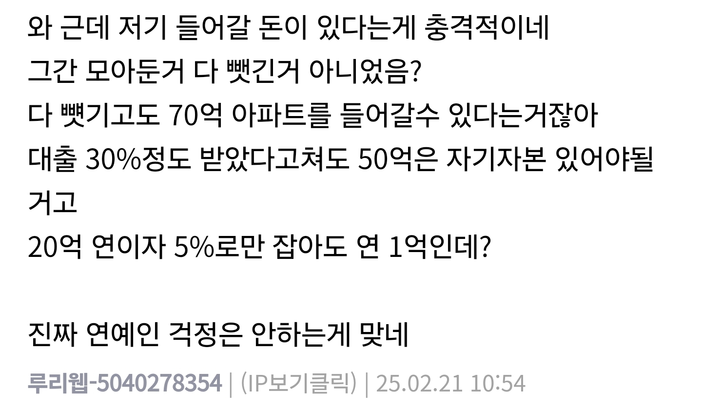 지방살아서 70억이면 ㅈㄴ좋은 신축인줄알았어... | 25.02.21 10:50 | | |