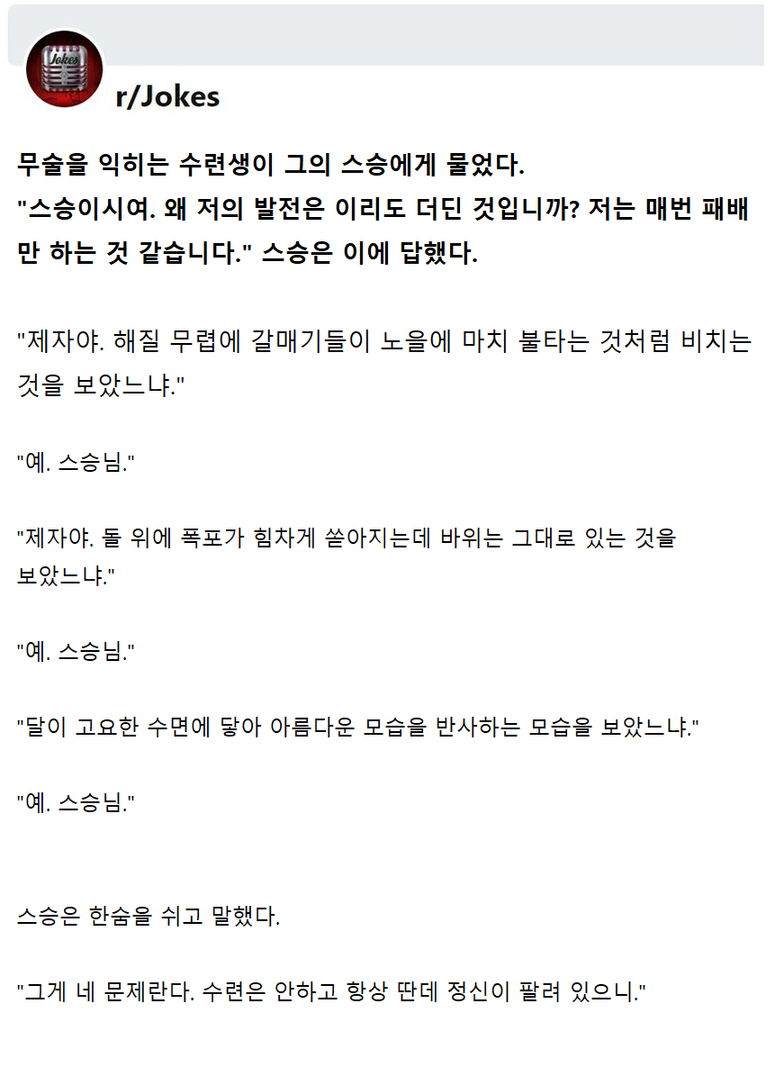 깨달음도 기초가 있어야 오는거다 인석아 | 25.02.21 14:26 | | |