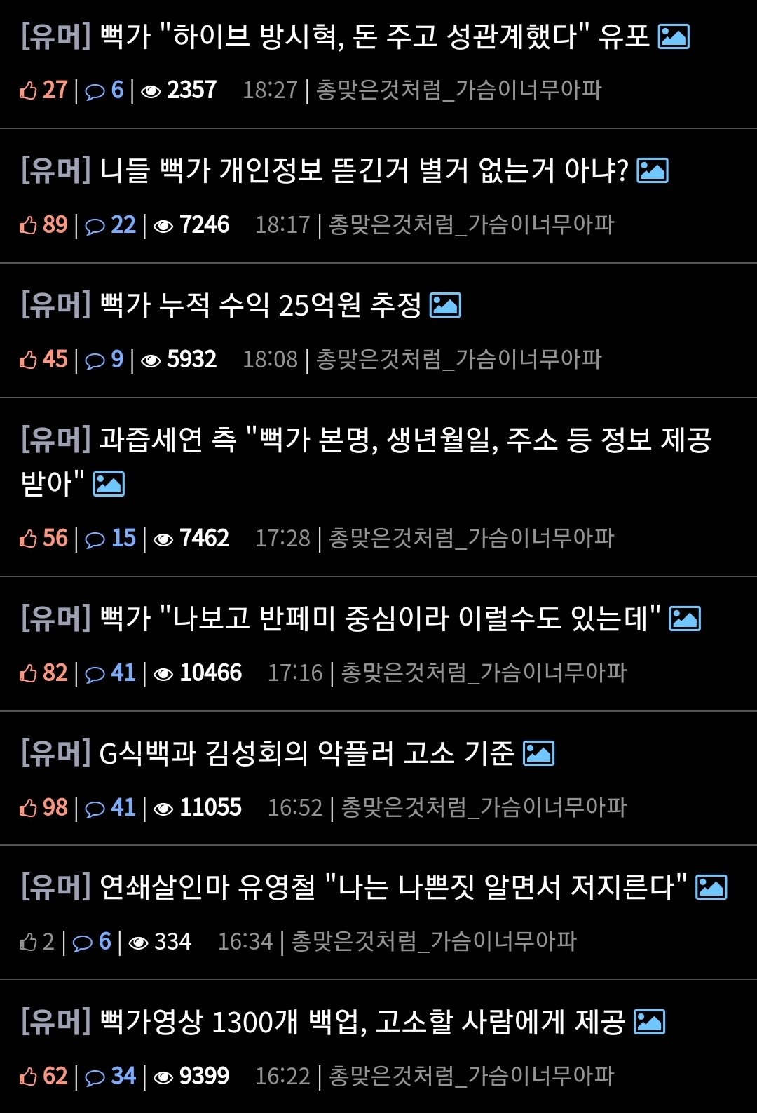 올리는 글 보면 다 짤 같은거 보니 걍 펨코 깔 구실 생겨서 신나보이는데 ㅋㅋㅋ | 25.02.21 18:33 | | |