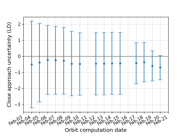 데이타 갱신 확인하려면 여기로 https://cneos.jpl.nasa.gov/sentry/ | 25.02.21 20:35 | | |