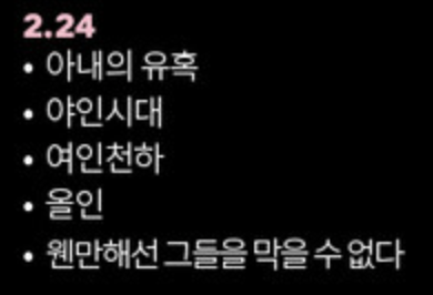 아내의 유혹이 문제가 아니네 야인시대가 있는 게 빅뉴스인데 | 25.02.21 23:20 | | |