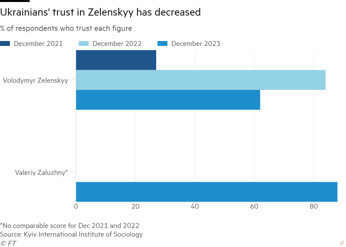 위에가 젤렌스키 아래가 잘루즈니 2023년 12월 여론조사 결과 잘루즈니의 지지세가 대단한걸 볼 수 있음 2024년 3월 잘루즈니 사령관 해임, 영국대사 발령 2024년 5월 젤렌스키 임기 종료 이거만 봐도 우크라 민주주의에 대한 우려가 나오는 이유를 모르겠나 | 25.02.22 10:24 | | |