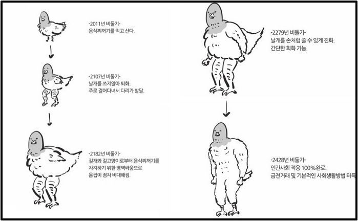 저런 케이스는 도시환경에 따른 종의 행태 변화 이고 도시 환경자체가 같은 종내에서도 생존변화를 일으킬수 있음 영국회색나방의 경우 도시가 커져감에 따라 도시색에 맞는 나방으로 생존에 유리하게 조정되서 종내 다른색나방들을 제치고 번성하게 됨 인간행태뿐아니라 도시의 존재자체만으로도 종의 생존이 좌우됨 https://ko.wikipedia.org/wiki/%ED%9A%8C%EC%83%89%EA%B0%80%EC%A7%80%EB%82%98%EB%B0%A9#:~:text=%ED%9A%8C%EC%83%89%EA%B0%80%EC%A7%80%EB%82%98%EB%B0%A9%EC%9D%98%20%EC%A7%84%ED%99%94%EB%8A%94%20%EC%A7%80%EB%82%9C%20200%EB%85%84%20%EB%8F%99%EC%95%88%20%EC%9E%90%EC%84%B8%ED%9E%88%20%EC%97%B0%EA%B5%AC%EB%90%98%EC%97%88%EB%8B%A4.,%EA%B7%B8%EC%9D%84%EB%A0%A4%EC%A1%8C%EC%9C%BC%EB%A9%B0%20%EC%9D%B4%EB%8A%94%20%EB%B0%9D%EC%9D%80%20%EC%83%89%20%EB%82%98%EB%B0%A9%EC%9D%B8%20typica%EC%99%80%20%EA%B0%99%EC%9D%80