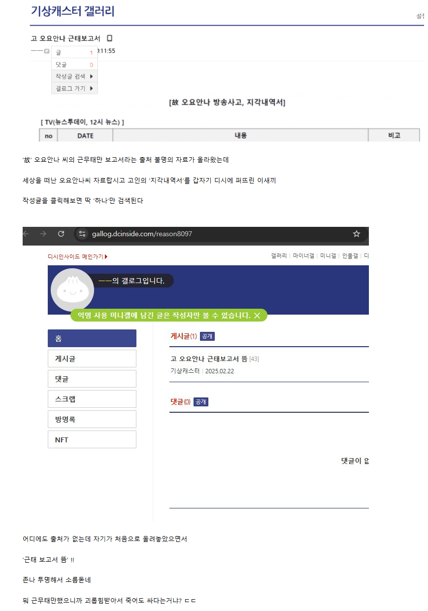 갑자기 근태보고서니 녹취록 편집된게 올라옴 | 25.02.22 18:04 | | |