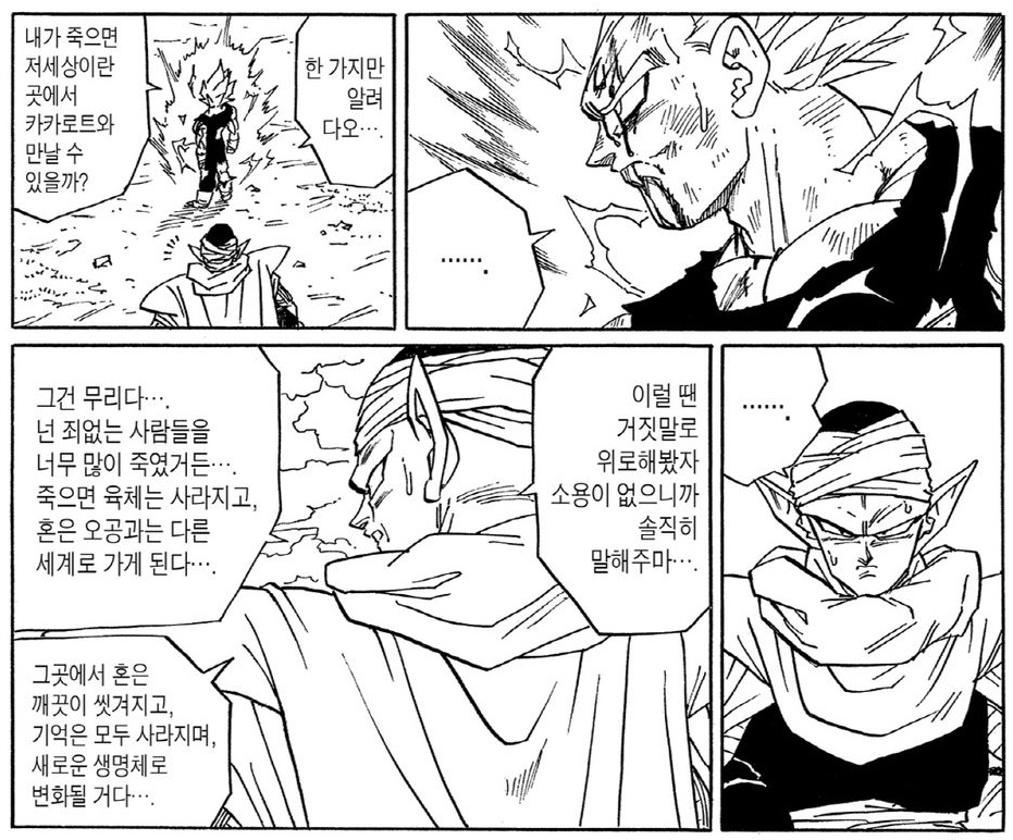어릴 적에 볼 때는 정 든 인기 캐릭터 베지터 여기서 영원히 하차하는 때가 오는구나. ㅠㅠ 39권에서 ㅠㅠ 어흐흐흐흑 41권에서…. ㅂㄷㅂㄷ 지금에야 베지트가 나온다는 것을 알고나 있지. ㅋㅋㅋㅋ 실시간으로 보던 때에는 진짜.;;