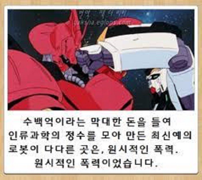 예전에 쿨찐이라고 해야되나 선민의식 같은거 가진 애들이 로봇은 의미 없다면서 까고 다녔지. 어쩌라고 근데... 전투기랑 전차 보고 싶은게 아닌데