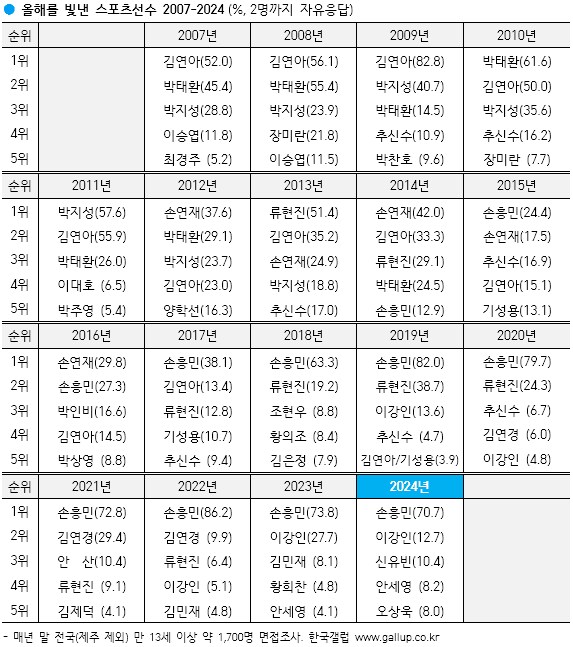 90년대는 박찬호, 박세리 2000년대는 박지성, 김연아 2010-2020년대는 손흥민