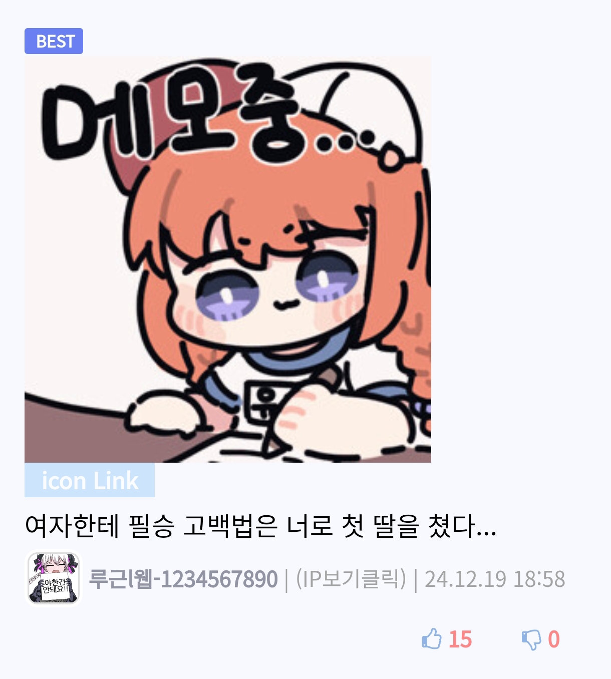 알지마.... 저거도 모쏠아다가 하는 말이야..... | 25.02.23 19:26 | | |