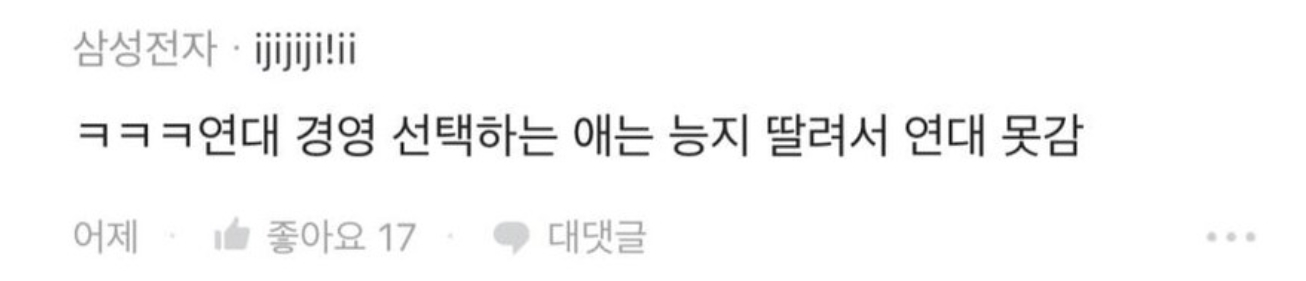 에. 연대 경영 입학이 아니라 연대 경영 갈 머리를 주면 고민함. | 25.02.24 10:21 | | |