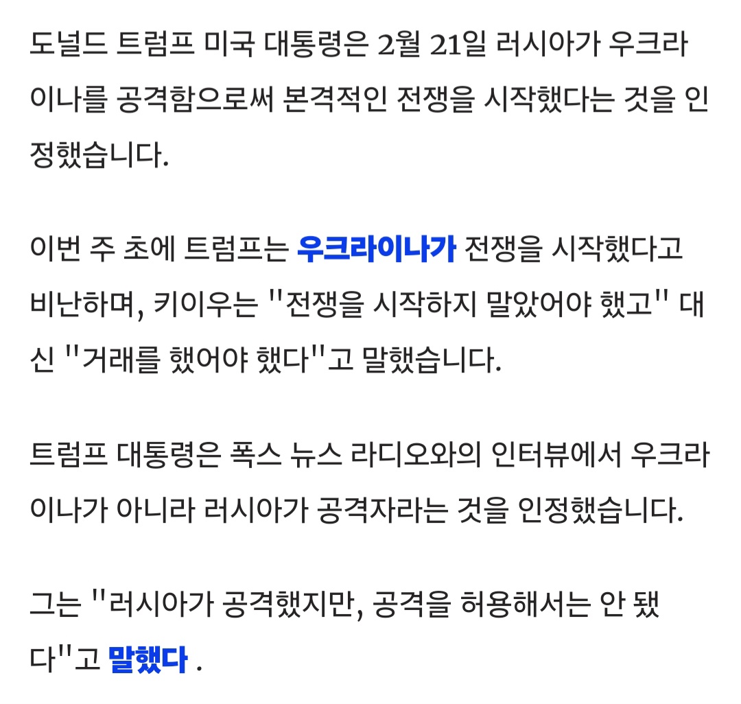 그나마 최근에 폭스 라디오에서 이렇게 말 바꿈 물론 그렇다고 해서 우크라이나에 대한 대접은 바꾼건 아님...