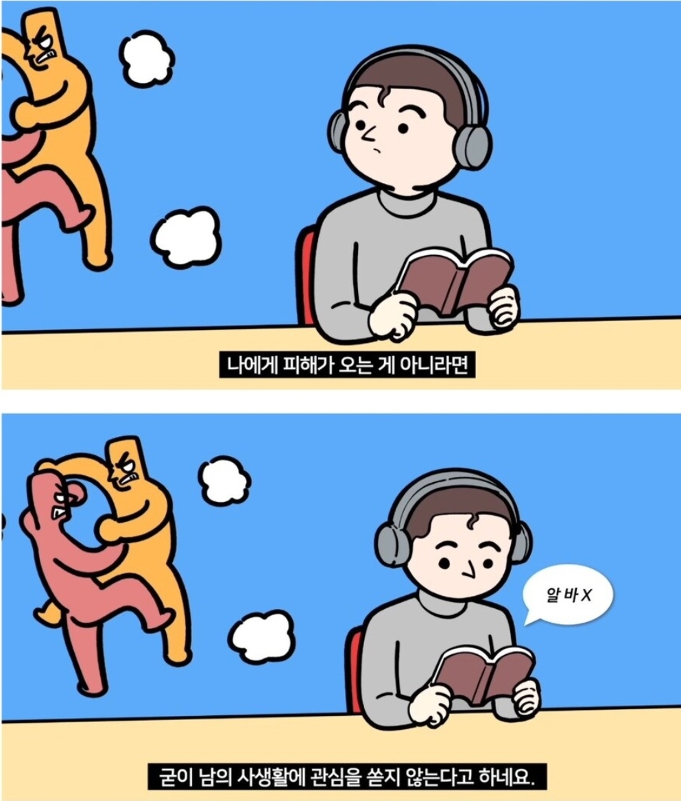 글쎄 요즘 개인주의는 이게 아니라 내가 더 편해진다면 남이 피해봐도 상관없다, 싸우면 이기면 된다 이거던데...ㅋㅋ