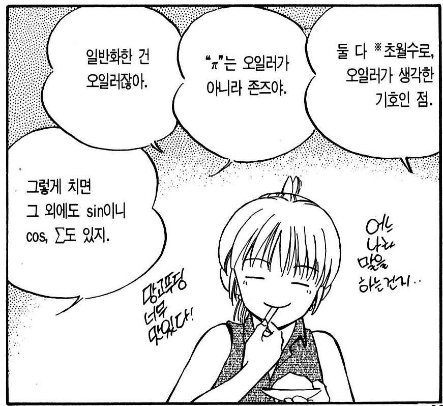초중반에는 누가 어려운 설명 하면 정신 나가는 설정이었음. 그런데 언젠가부터 갑자기 어려운 설명을 자연스럽게 이해하는 제스처를 취하더니 ... !
