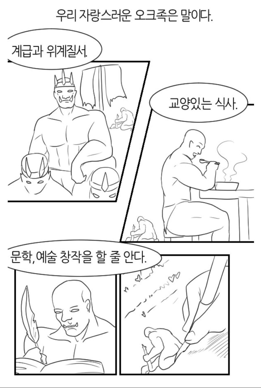 명예로운 결투에서 서로의 무구마저 떨어뜨린 채 박투에 돌입해 싸우던 와중 오크 전사가 마침내 상대의 후방을 잡고 관절기를 거는 장면을 표현한건데 | 25.02.24 12:30 | | |