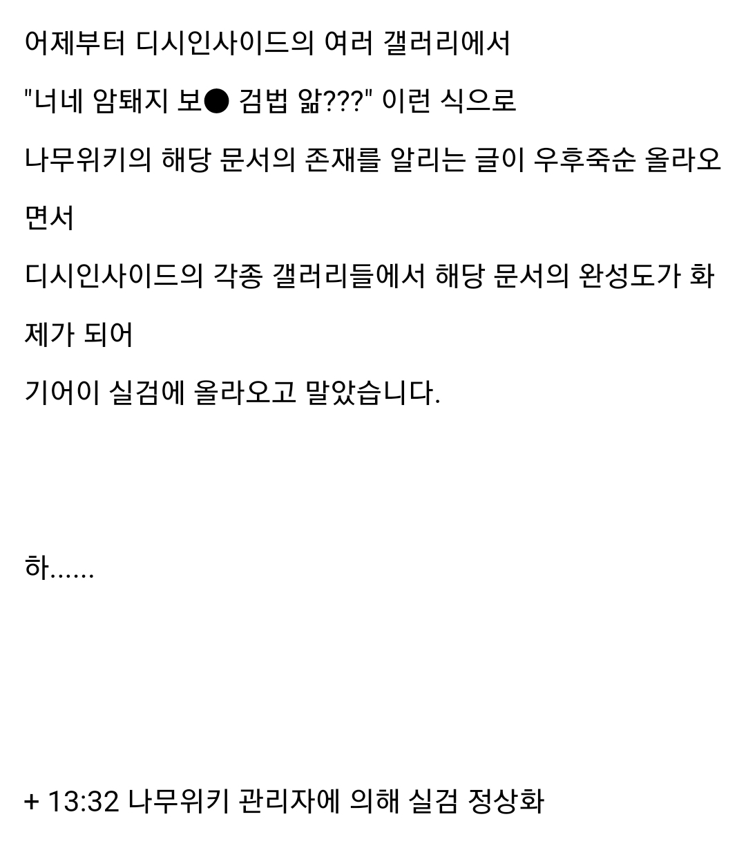 나무위키 관련 사건사고 문서들 ㅋㅋㅋㅋ | 25.02.24 16:58 | | |