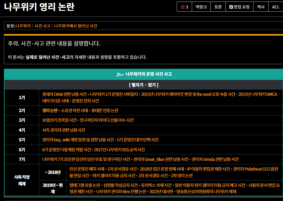나무위키 관련 사건사고 문서들 ㅋㅋㅋㅋ