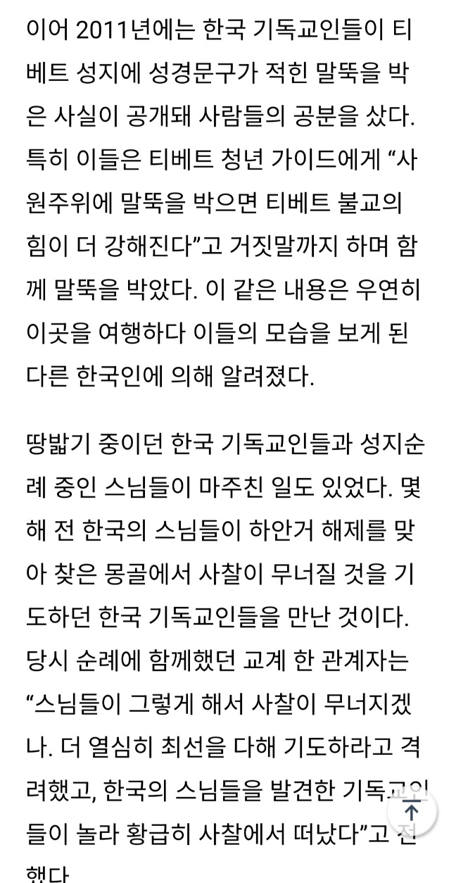 땅밟기라고 그치들말로는 그 지역에 복음이 퍼지도록 기도한다고 하는데 실제 행위는 다른종교 사원가서 무너지라고 저주하는거라서 | 25.02.26 07:35 | | |