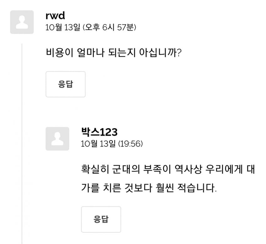 거기다 얘네 국내총생산이 우리나라 절반 남짓인데 저렇게 쓰는 건데, 무서운 건 무서운 건데 너무 과하긴 함 | 25.02.26 13:37 | | |