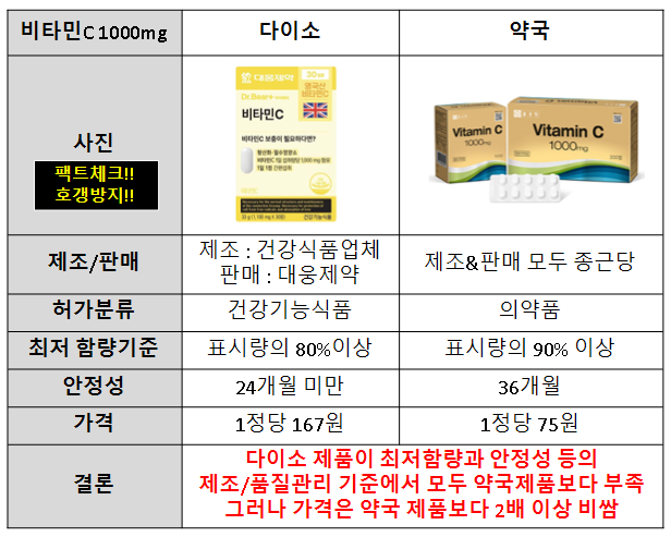 일단 내용물이 완전히 같은 건 아님(어떤 영양소가 빠졌다거나) 근데 영양제는 약국마다 가격이 다르다는 말이 있고 굳이 모든 걸 다 챙기는 고급 상품 사용하는 사람들 외에는 가성비 좋고 쓸만하다는게 그동안 다이소 납품제품들 평가