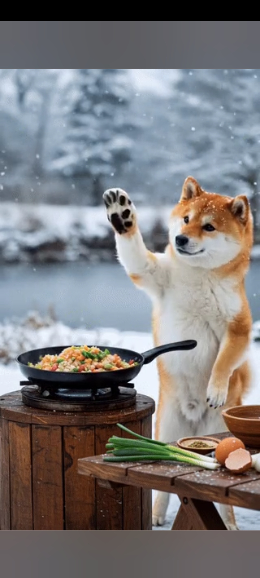 AI야! 눈 내리는 설산에서 프라이드 치킨을 먹는 동양 남자의 영상을 만들어줘!