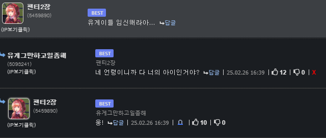 어제 보니까 유게이들 임신시킬려고 조종하는 애도 있더라 | 25.02.27 11:19 | | |