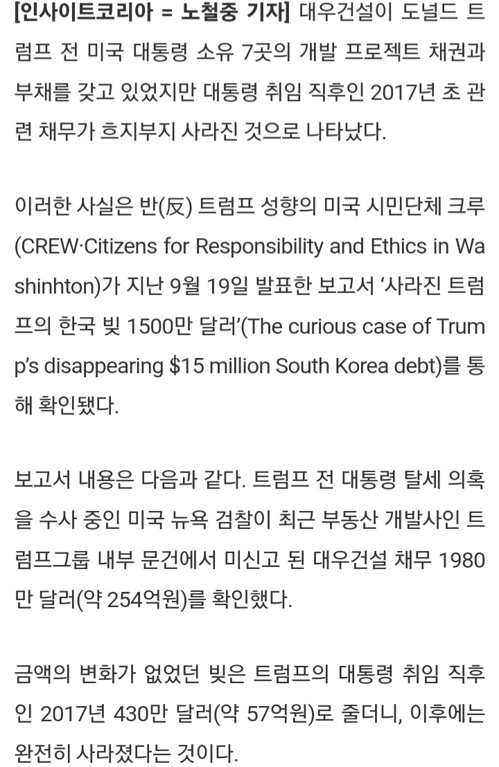 트럼프 빚 2000만 달러도 없애줬어
