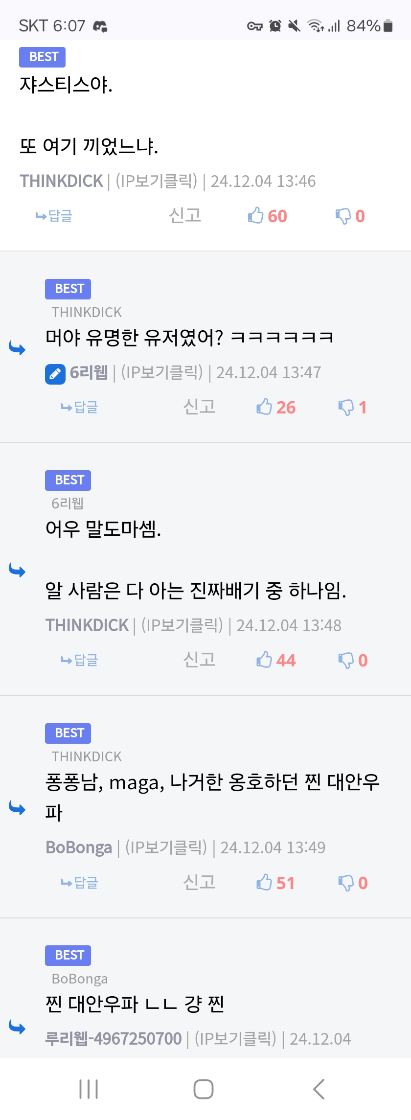 일베성향 보수전사로 활동하다가 정지먹고 요즘은 남녀갈등이나 중국관련글로 먹고산다는 그 무릎 형? | 25.02.27 21:06 | | |