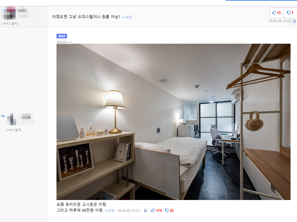 코너사이드 방이고 코너사이드방 1층 4개 저 뷰 보이는 방은 짝퉁 1방 뿐이니 잠실 롯데 호텔만해도 가장싼건 방50만원하니.. 도쿄 타워 뷰라고해서 무작정 비싼건 아닌듯 | 25.02.28 01:10 | | |