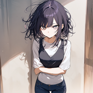 큰 눈과 살짝 흐트러진 헤어스타일, 얇고 몸에 붙는 셔츠에 청바지를 입은 20대 후반의 여성. 배는 살짝 둥글지만, 자신감 넘치는 표정으로 화면을 바라보는 모습의 루리웹 유게이를 그려봐라. | 25.02.27 21:52 | | |