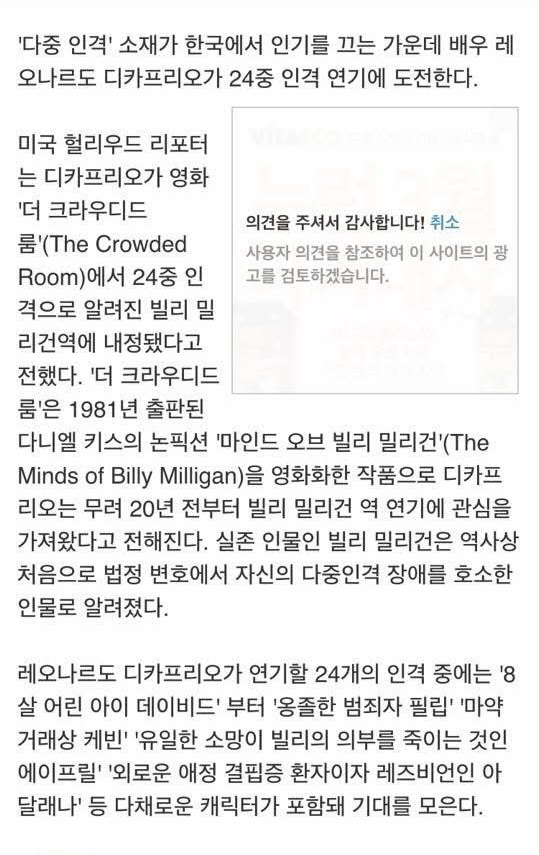 23아이덴디티?원래 디카프리오한테 제의 왔었나봐요? 아니면 빌리 밀리건 모티브로 한 영화였을라나 | 25.02.28 12:33 | | |