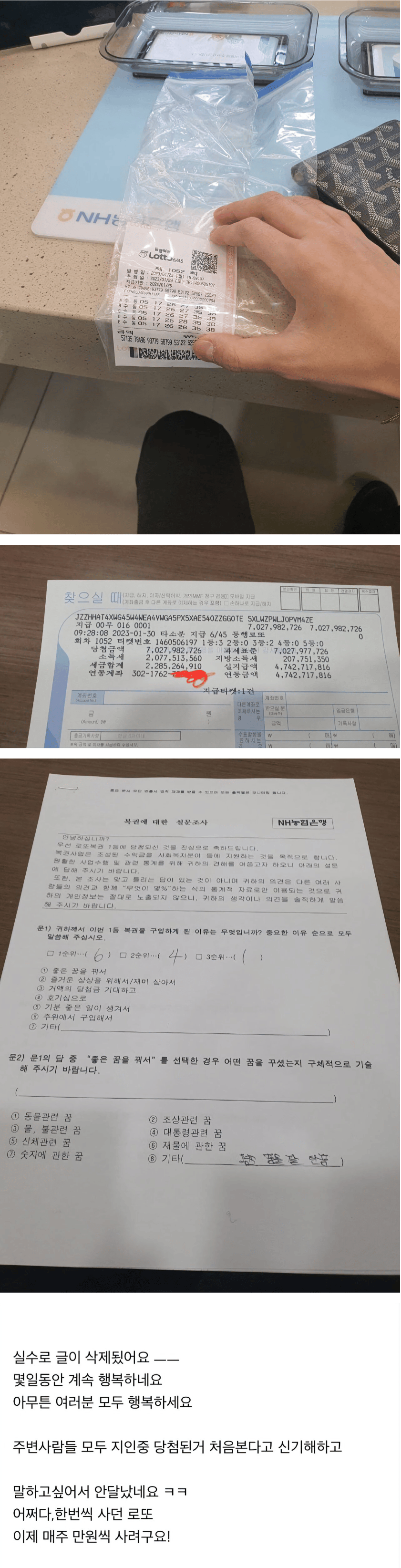 이렇게 1등 당첨자는 나타나지 않았고.. 당첨금은 국고로 귀속되었다... | 25.02.28 09:39 | | |