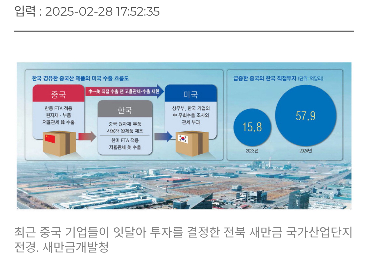 캐나다 멕시코 관세 때린 논리랑 똑같음 중국산에 관세 매기니까 중국 기업들이 다른 국가에 공장 짓고 생산지 택갈이해서 미국 동맹국으로 우회해서 수출한다고 | 25.02.28 18:17 | | |