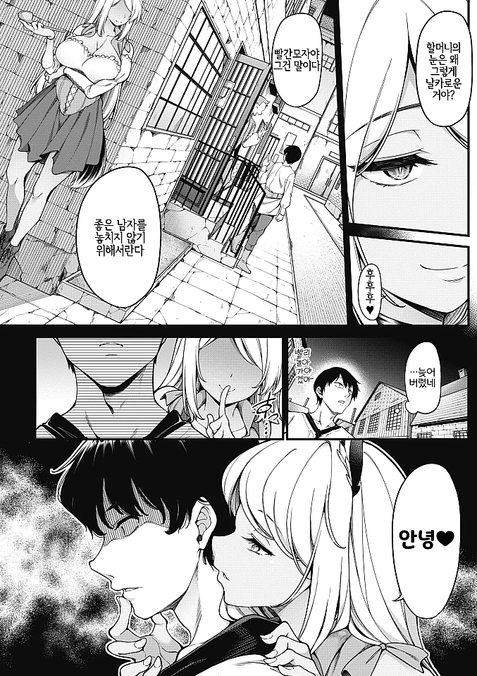 빨간망토는 길을 막던 늑대를 따1먹고 할머니를 범하기 위 아니 뵙기 위해 다시 길을 떠났어요
