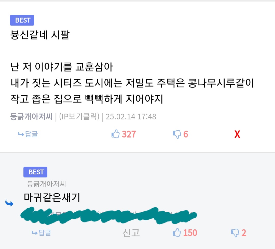 뭔 소린가 했더니 지가 쓴 댓글이었네 ㅋㅋㅋㅋ 양심고백이냐 아니 마귀한테 양심이 있긴 한가 ㅋㅋㅋㅋ | 25.03.01 01:49 | | |