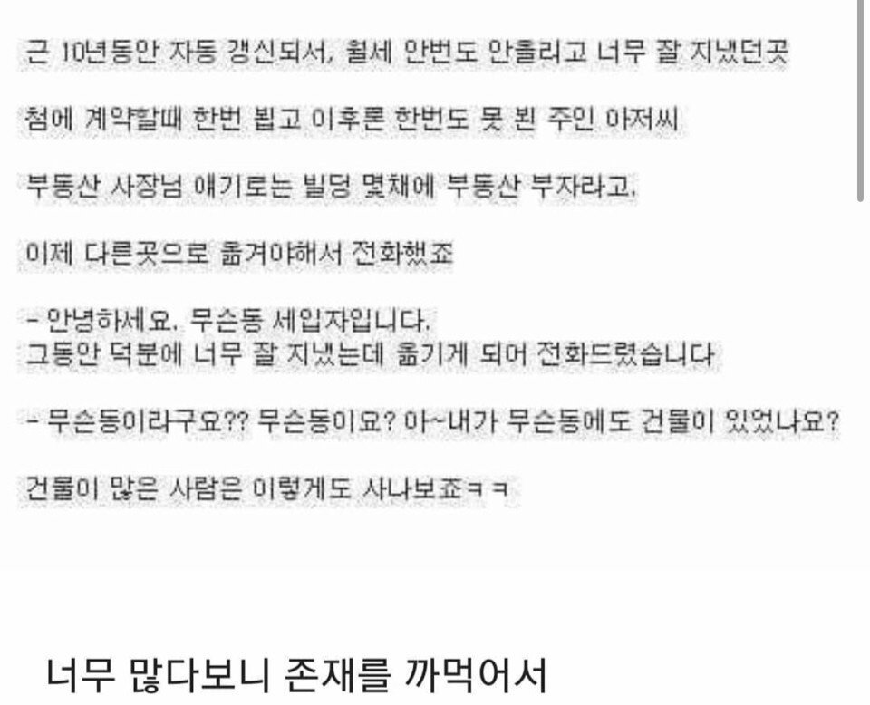 집주인 : 네? 제가 거기도 집이 있다구요?(알고 보니 관리는 직원이..)
