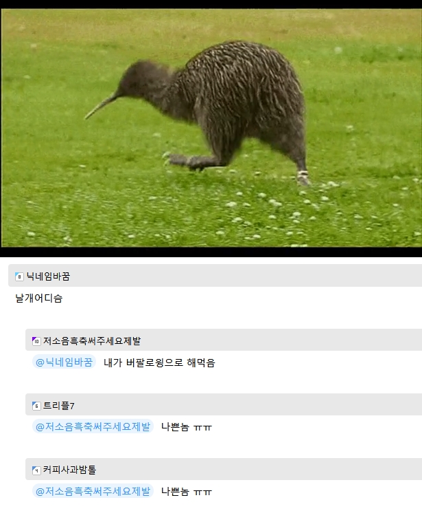 키위새 날개를 자른 작성자 복수하겠다!! 죽어라!!!