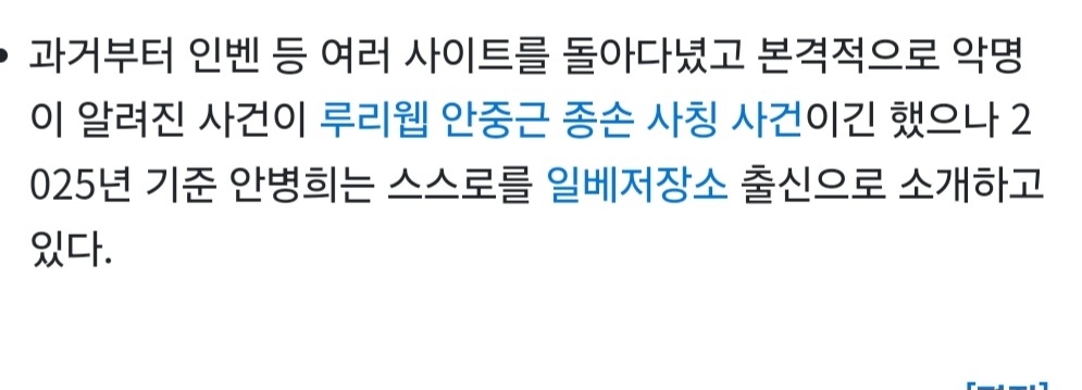 유명해진게 루리웹에서 빌런으로 찍히면서 유명해진거고 온갖 곳 다 싸돌아다님ㅇㅇ 당장 최근은 미정갤에서 놀고 있었고 | 25.03.01 15:08 | | |