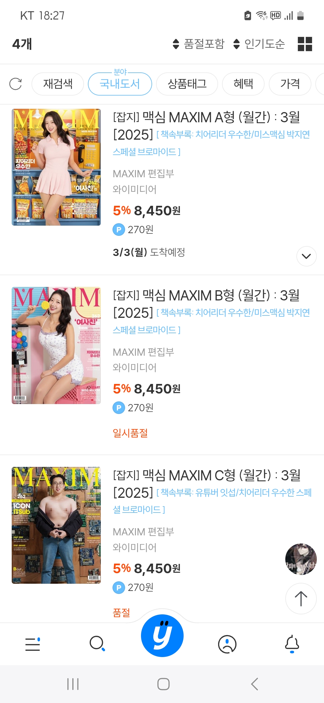 일시품절 : 재입고 예정 있음 품절 : 재입고 예정 없음 말그대로 완판남이다. | 25.03.01 18:31 | | |