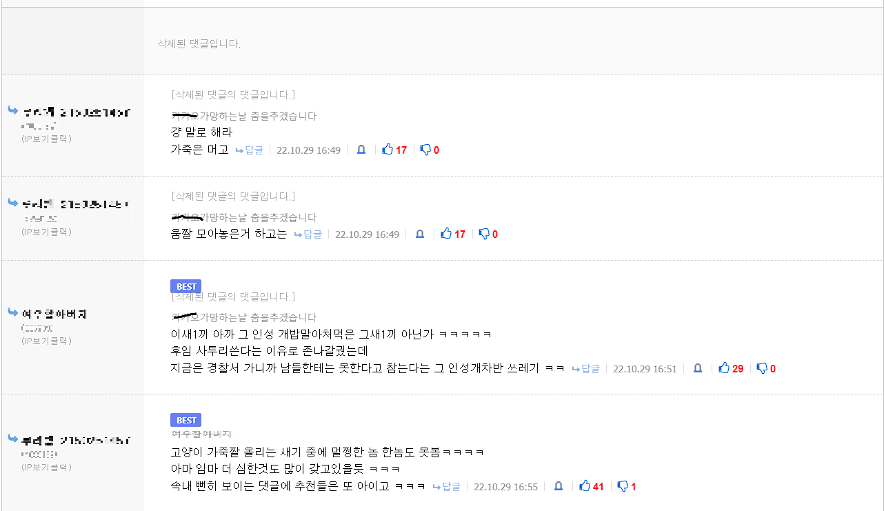 결국 표적이 고양이 인 듯 말하면서 캣맘을 학살하자 고 하는 애들이 한번씩나와서 두려움 | 25.03.01 19:56 | | |